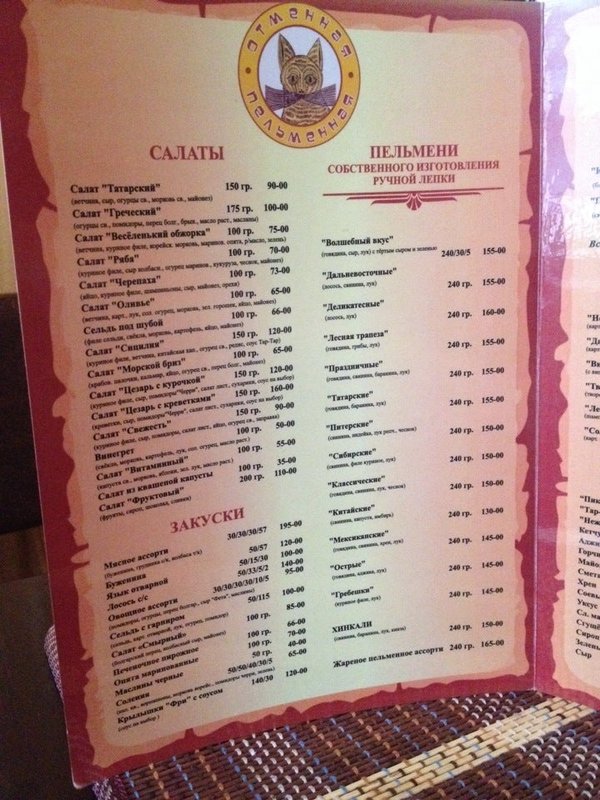 Наше заведение - отменная пельменная - это винный бар. У нас вы можете провести время за общением в компании или просто как следует отдохнуть после рабочих будней - и в этом вам с удовольствием помогут наши опытные бармены и ассортимент спиртного. Они посоветуют напитки по вкусу и кошельку! Вам нужно лишь рассказать, что предпочитаете: крепость и вкус (сладкий или горьковатый). Чтобы ваш бокал не пустовал, мы предлагаем большой выбор сухих, полусладких, крепких вин из различных сортов винограда.